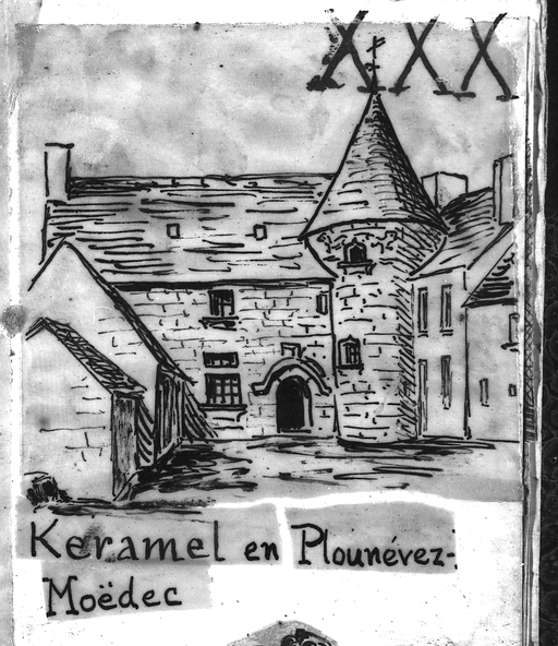 Plounévez-Moëdec, Keramel : manoir, croquis par Henri Frotier de la Messelière, 1929Immatriculation