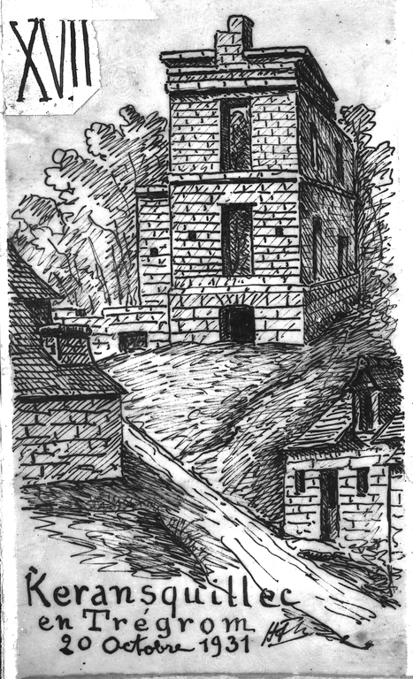 Croquis des vestiges du manoir de Keransquillec par Henri Frotier de la Messelière, 20 octobre 1931Immatriculation