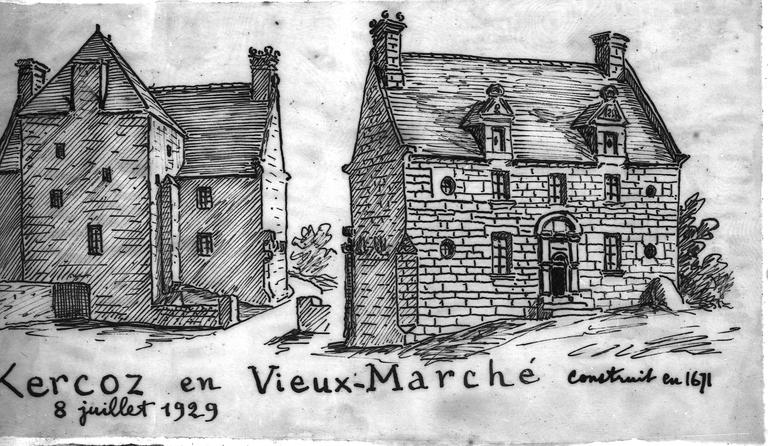 Le Vieux-Marché, Kergoz : maison, [Kercoz] croquis par Henri Frotier de la Messelière, 1929Immatriculation