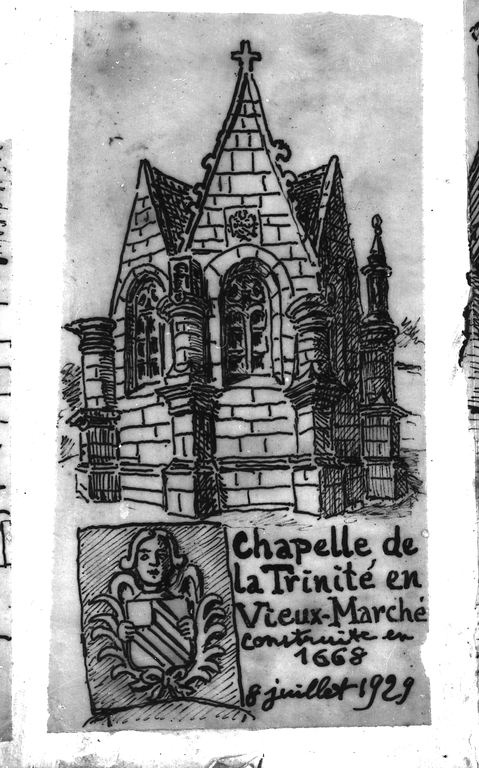 Le Vieux-Marché, La Trinité : chapelle de La Trinité, croquis par Henri Frotier de la Messelière, 8 juillet 1929Immatriculation
