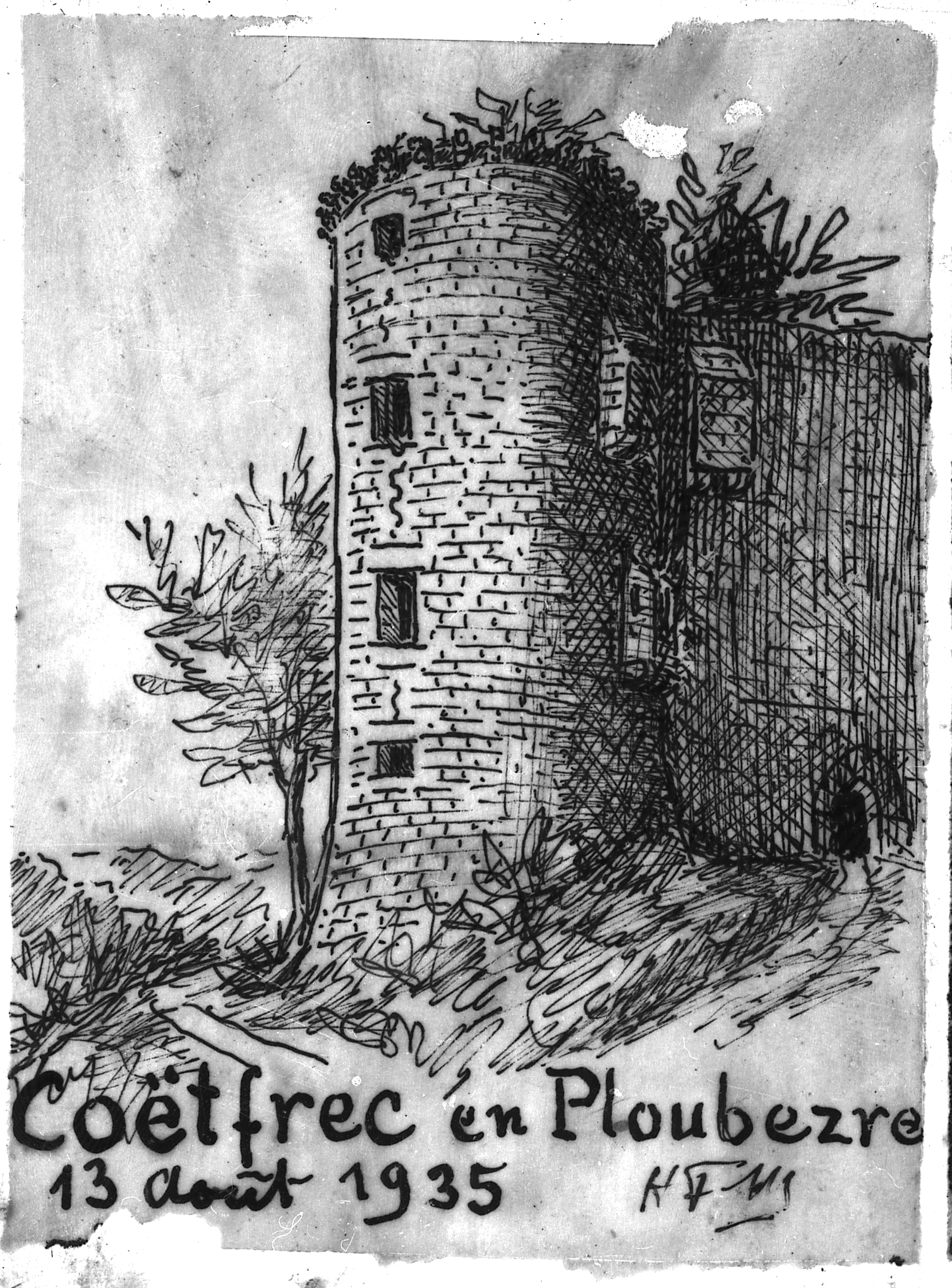 Ploubezre : le château fort de Coat Frec, croquis par Henri Frotier de la Messelière, 13 août 1935Immatriculation