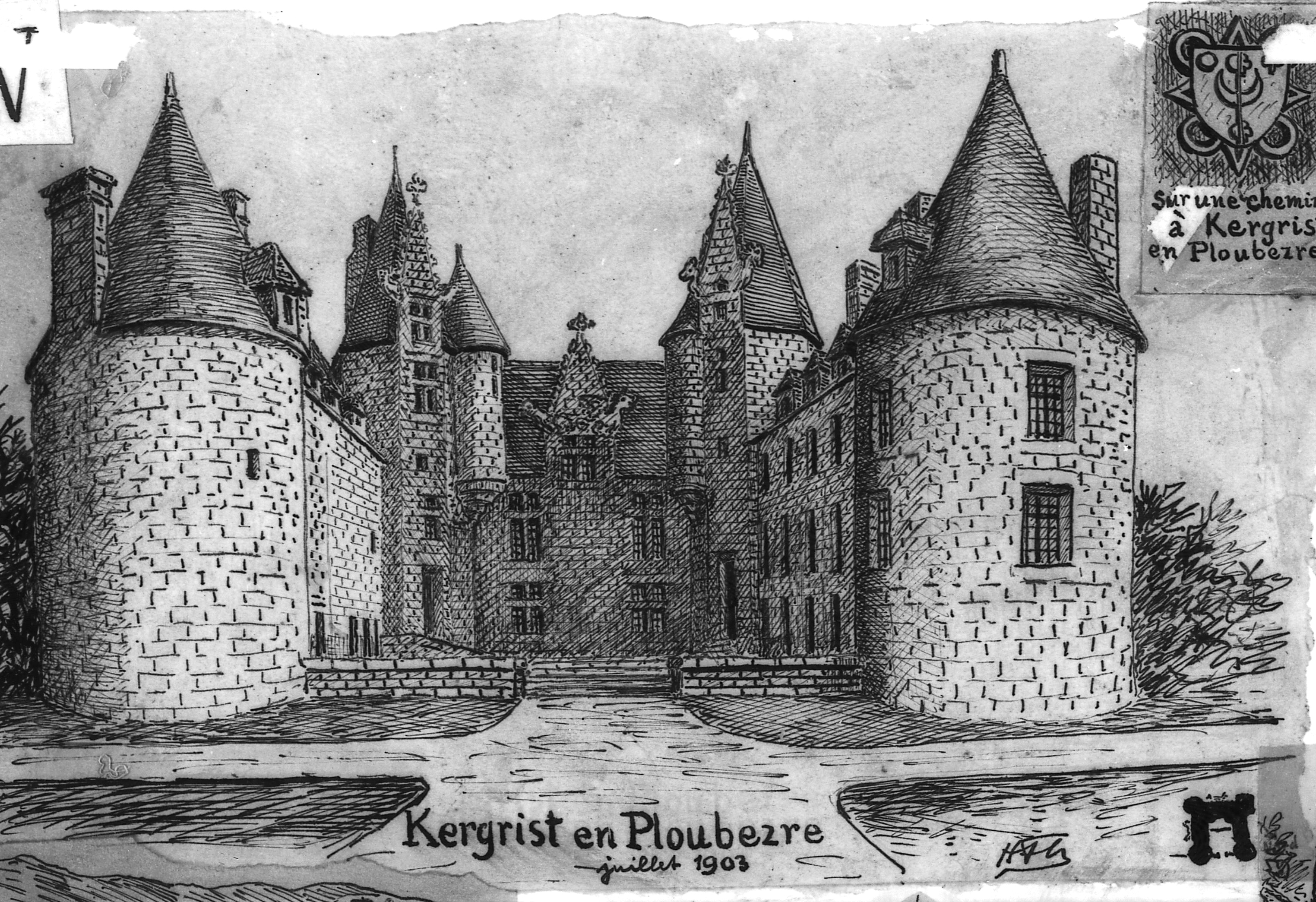 Ploubezre : château de Kergrist, vue générale depuis le nord, croquis par Henri Frotier de la Messelière, juillet 1903Immatriculation