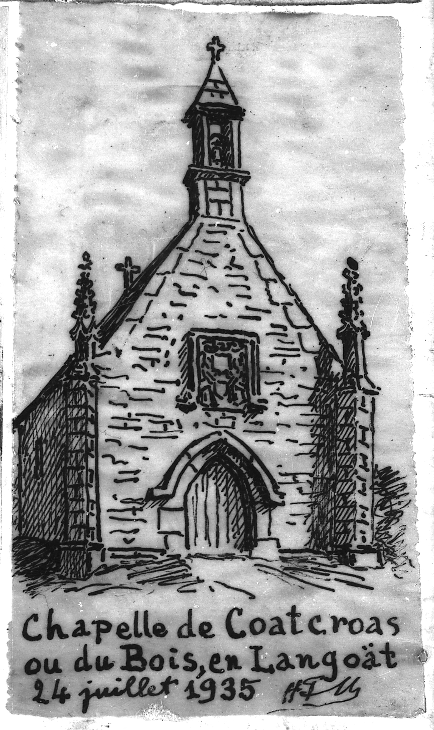 Langoat : chapelle Notre-Dame-du-Bois, croquis de Henri Frotier de la Messelière, 24 juillet 1935Immatriculation
