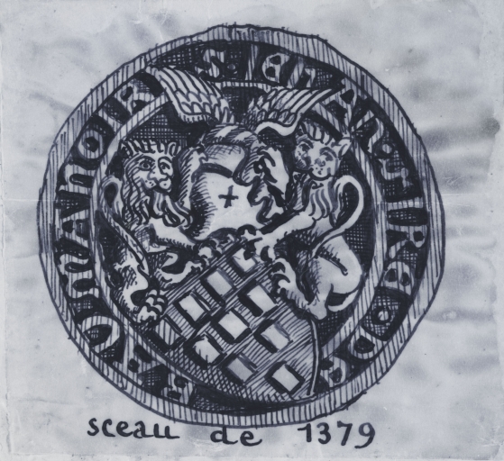 Sceau de 1379 (Repro. dessin Fonds Frotier de la Messelière).Immatriculation