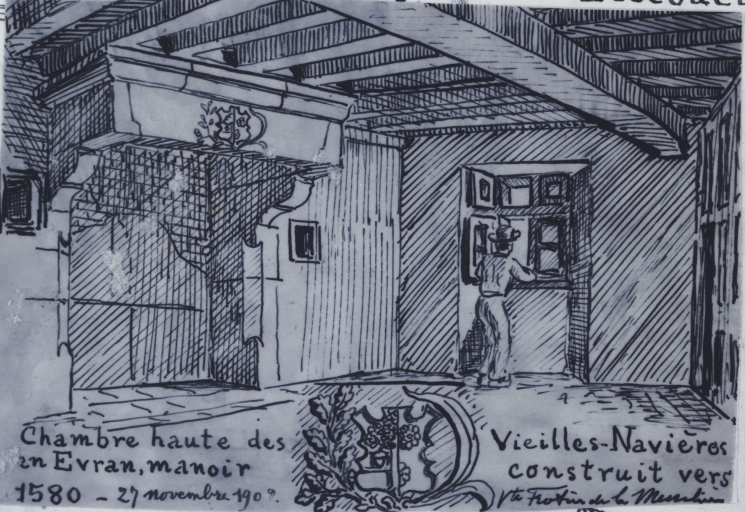 Croquis, chambre haute des Vieilles-Navières en Evran, manoir construit vers 1580, 27 novembre 1902.Immatriculation