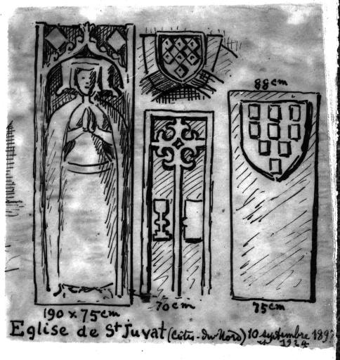 Enfeu et pierres tombales, croquis de Frottier de la Messelière, 10 septembre 1897 et 1924.Immatriculation