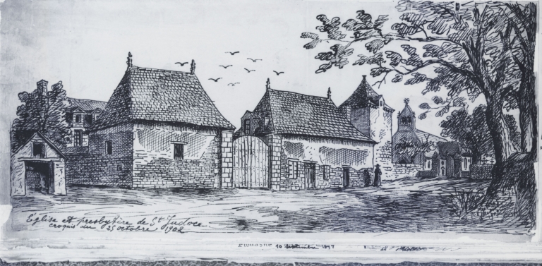 Eglise et presbytère de St Judoce, croquis de Frotiier de la Messelière, 25 octobre 1902Immatriculation