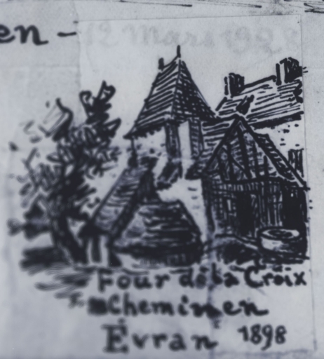Croquis, four de la croix Chemin en Evran, 1898.Immatriculation