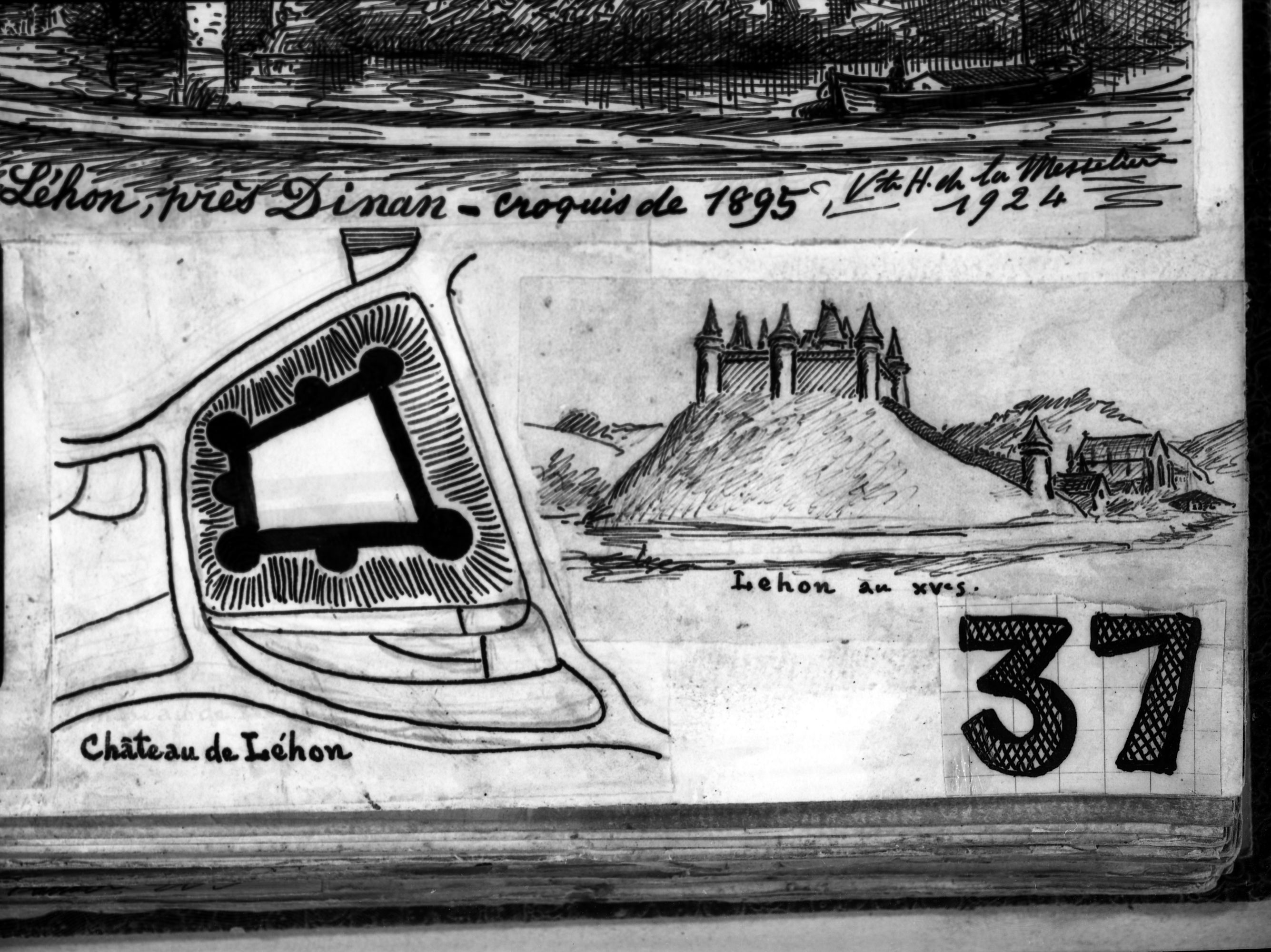 Croquis de 1895 de Frotier de la Messelière, restitution du château, vue sudImmatriculation
