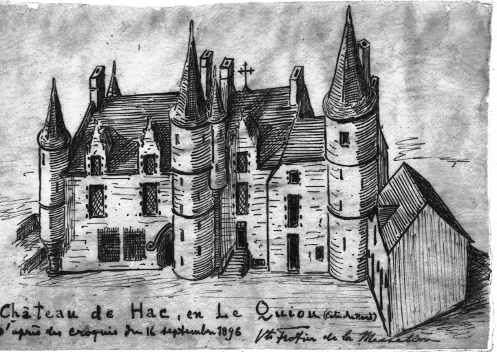 Vue cavalière (Repro. dessin Fonds Frotier de la Messelière, 1896).Immatriculation