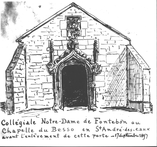 Croquis, collégiale Notre-Dame-de-Fontebon ou chapelle du Besso en Saint-André-des-Eaux avant l'enlèvement de cette porte, 17 septembre 1897.Immatriculation
