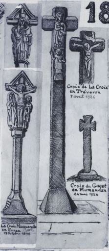 Croquis, la croix-Macquerel en Evran, 18 octobre 1896 ; croix de la Croix en Tréveron, 7 avril 1926 ; croix du Gacet en Plumaudan, 24 mai 1924.Immatriculation