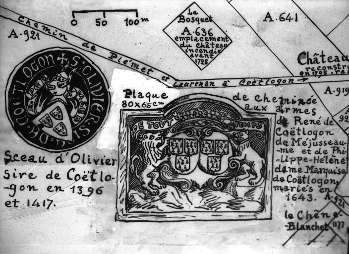 Sceau d'Olivier de Coëtlogon (dessin Frotier de la Messelière)Immatriculation