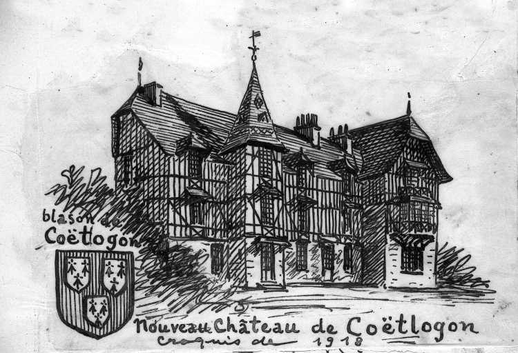 Nouveau château de Coëtlogon en 1918 (dessin Frotier de la Messelière)Immatriculation