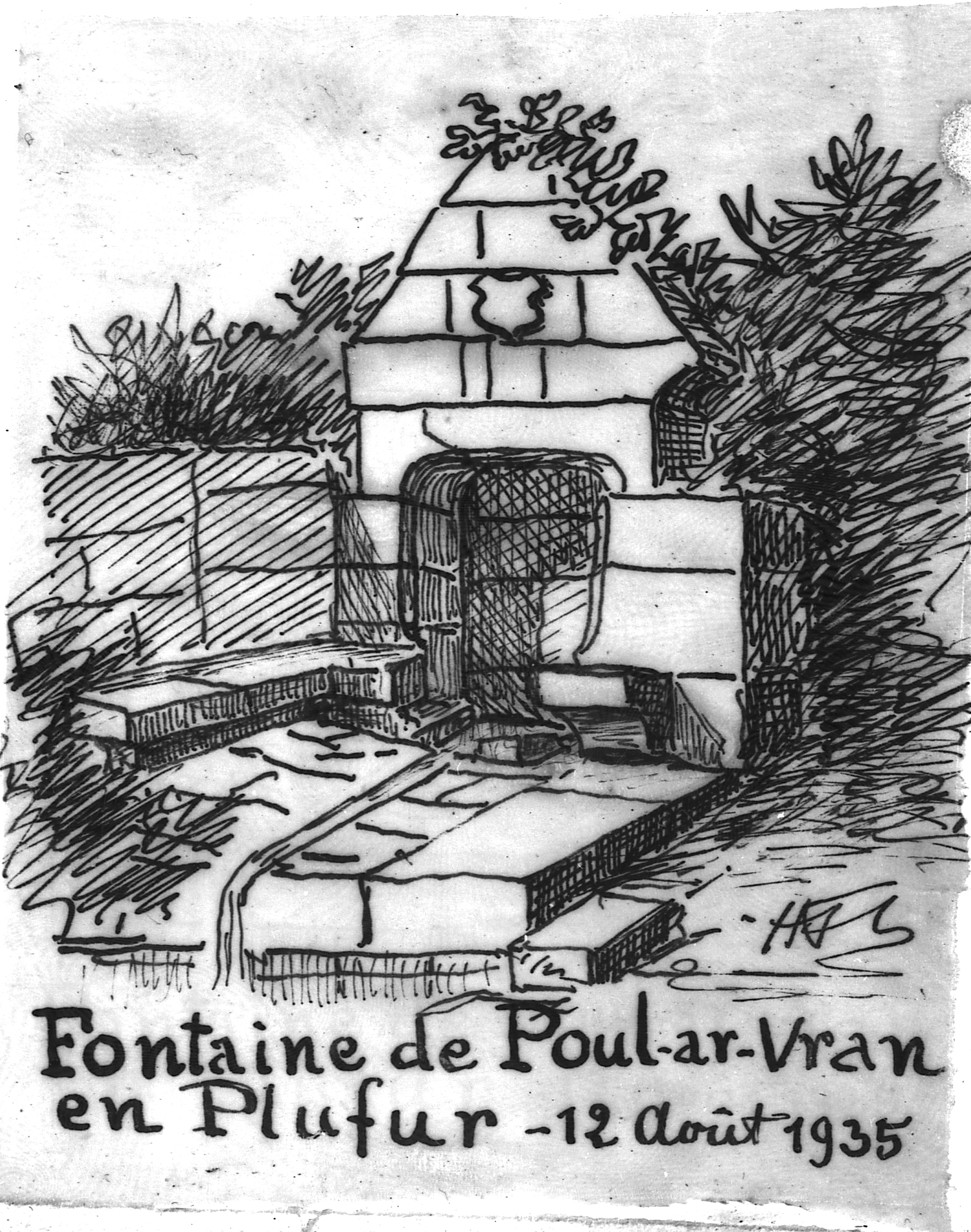 Plufur : fontaine de Poul ar Vran, croquis par Henri Frotier de la Messelière, 12 août 1935Immatriculation