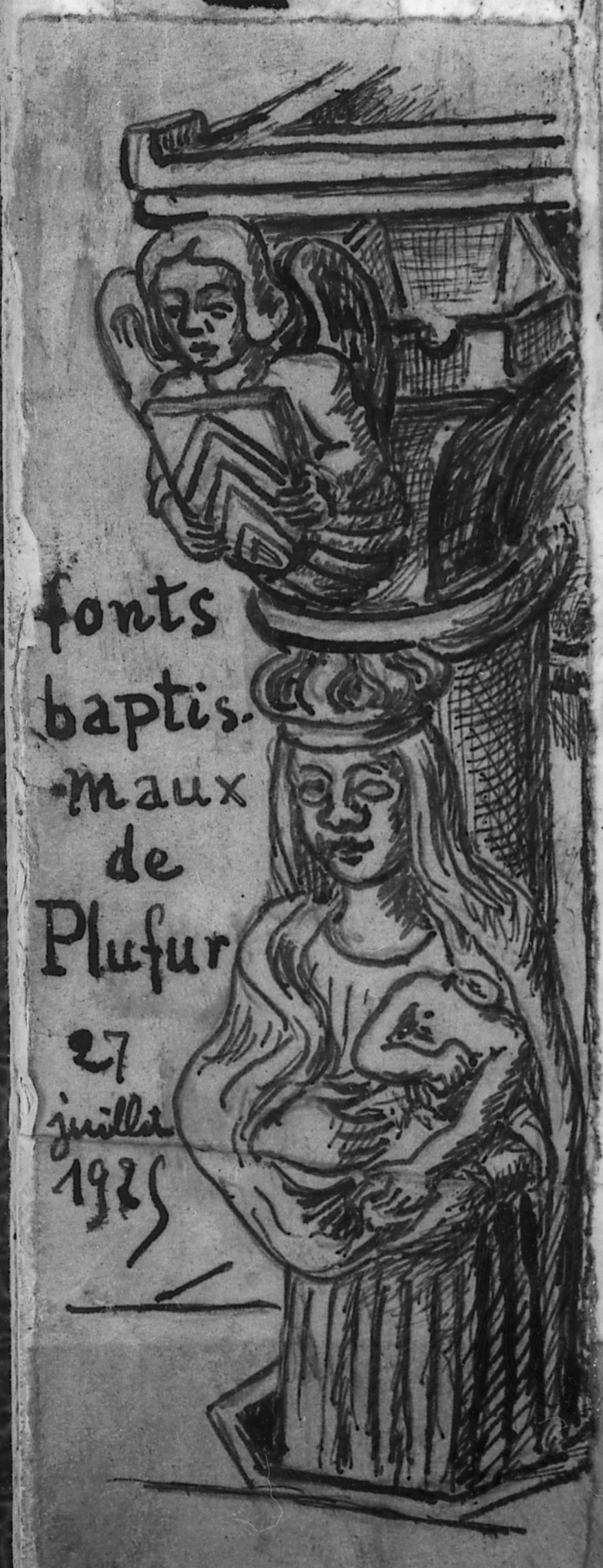 Plufur : fonts baptismaux, croquis par Henri Frotier de la Messelière, 1935Immatriculation