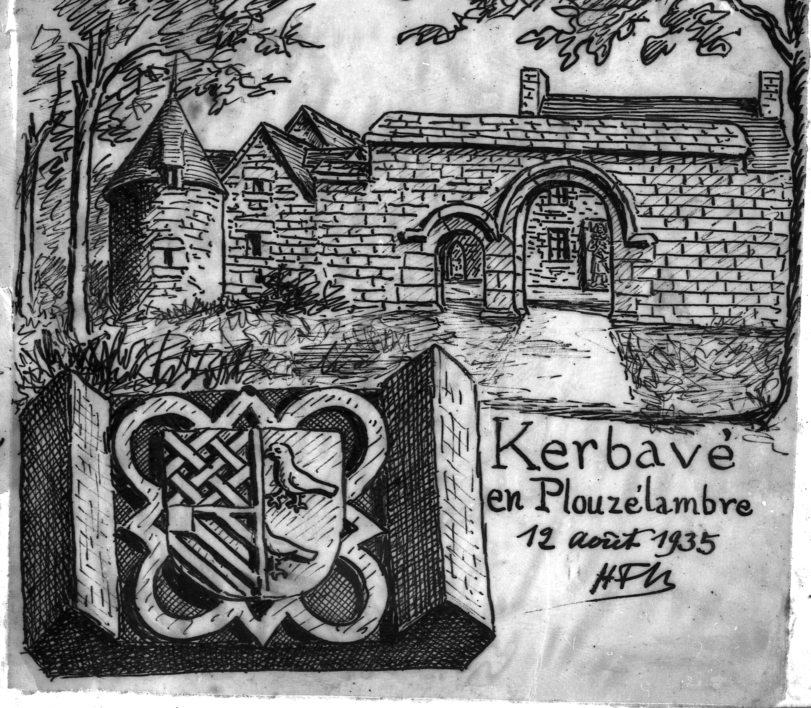 Plufur : manoir de Kerbavé, croquis par Henri Frotier de la Messelière, 12 août 1935Immatriculation