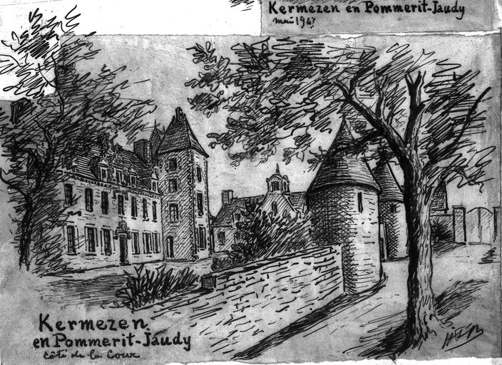 Le château de Kermezen en 1947. Dessin de Frotier de La Messelière (A.D. 22, série Fi)Immatriculation