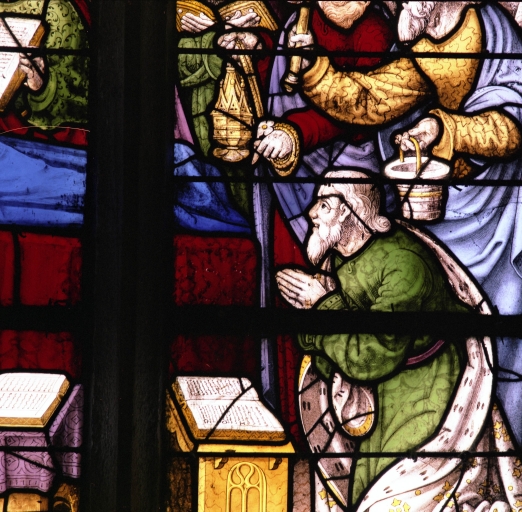 Verrière : Dormition et couronnement de la Vierge,
