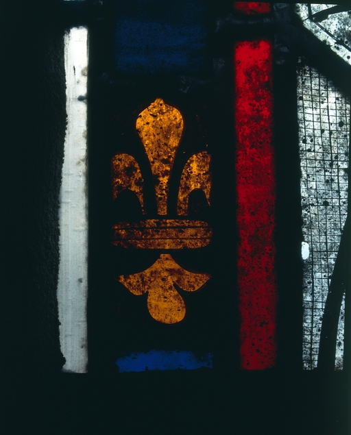 Verrière 0, détail de la fleur de lys.Immatriculation