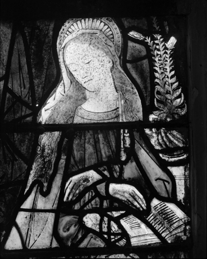 Panneau b1, l'Annonciation, vue de détail.Immatriculation
