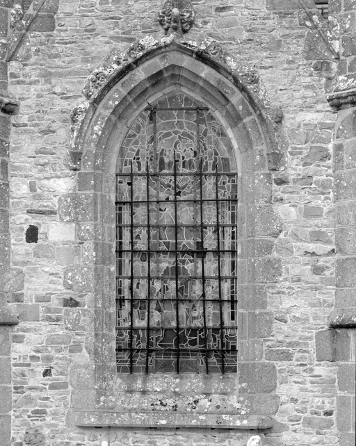 Verrière (verrière figurée) : Pentecôte (baie 8), ancienne collégiale, actuellement église Sainte-Marie-Madeleine (Champeaux),