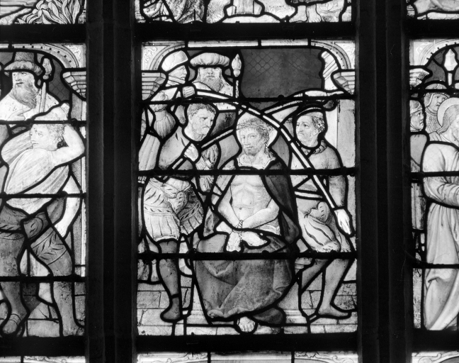 Verrière 0, panneau b4 : Ecce Homo.Immatriculation