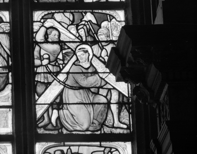 Verrière 0, panneau d4 : Portement de croix.Immatriculation