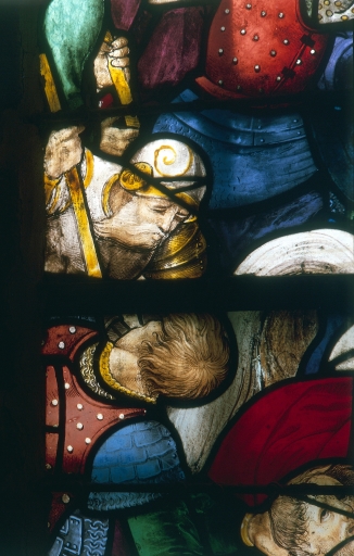 Verrière (verrière figurée) : saint Paul terrassé sur le chemin de Damas (baie 2),