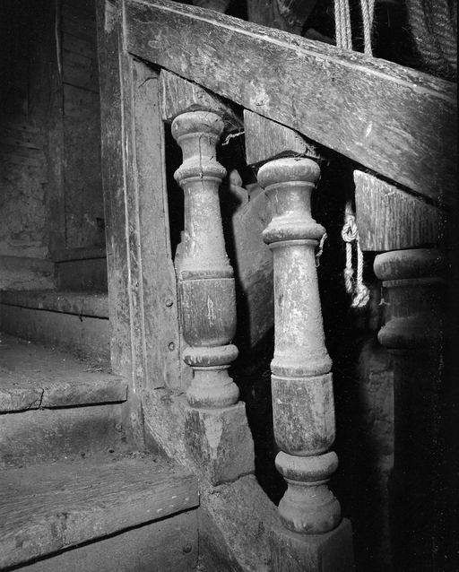 Logis, escalier de distribution intérieur : détail des balustres.Immatriculation