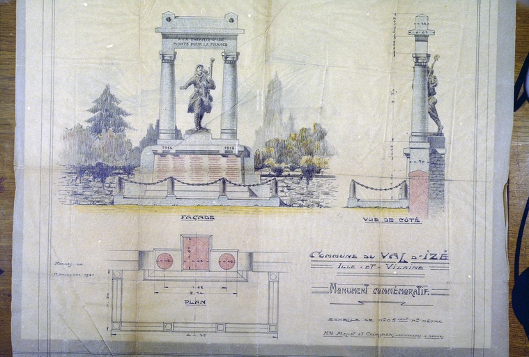 Plan de projet de monument aux Morts, par Mellet et Couasnon.