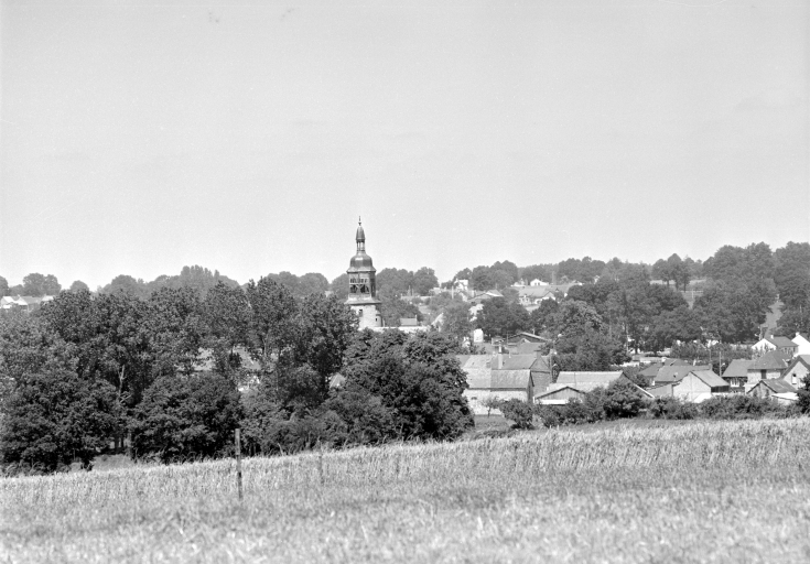 Vue de situation du bourg, et de l'ancienne église.Immatriculation
