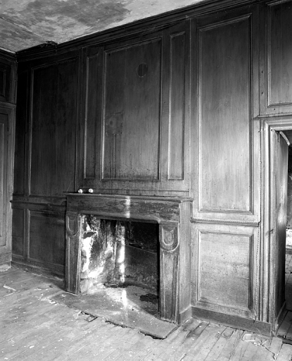 Logis F du maître des forges ; vue intérieure : rez-de-chaussée, cheminée du petit salonImmatriculation