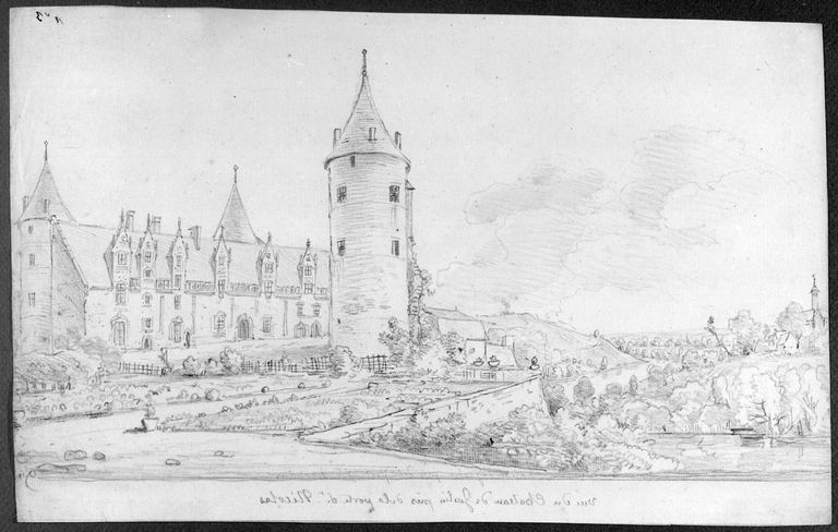 Élévation sur cour et tour isolée à partir du nord-est. Dessin, 1776 (coll. part.)Immatriculation