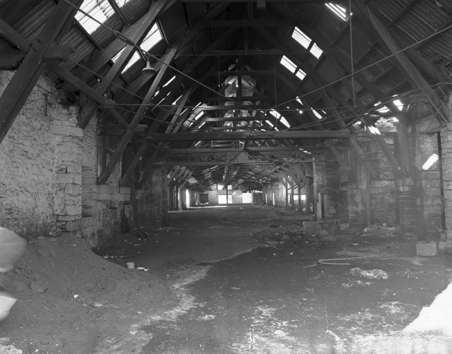 La fonderie, vue intérieure (charpente massive reposant sur des pilastres) (1981).Immatriculation