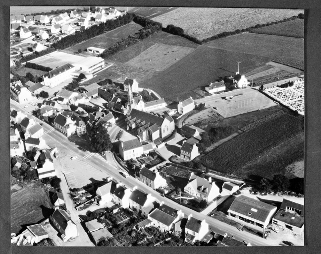 Landudec, église paroissiale Saint-Tudec et Sainte-Anne : vue aérienne sud-est en 1981.Immatriculation