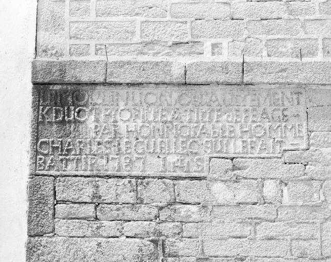 Partie ouest, élévation sud-est, inscriptionImmatriculation