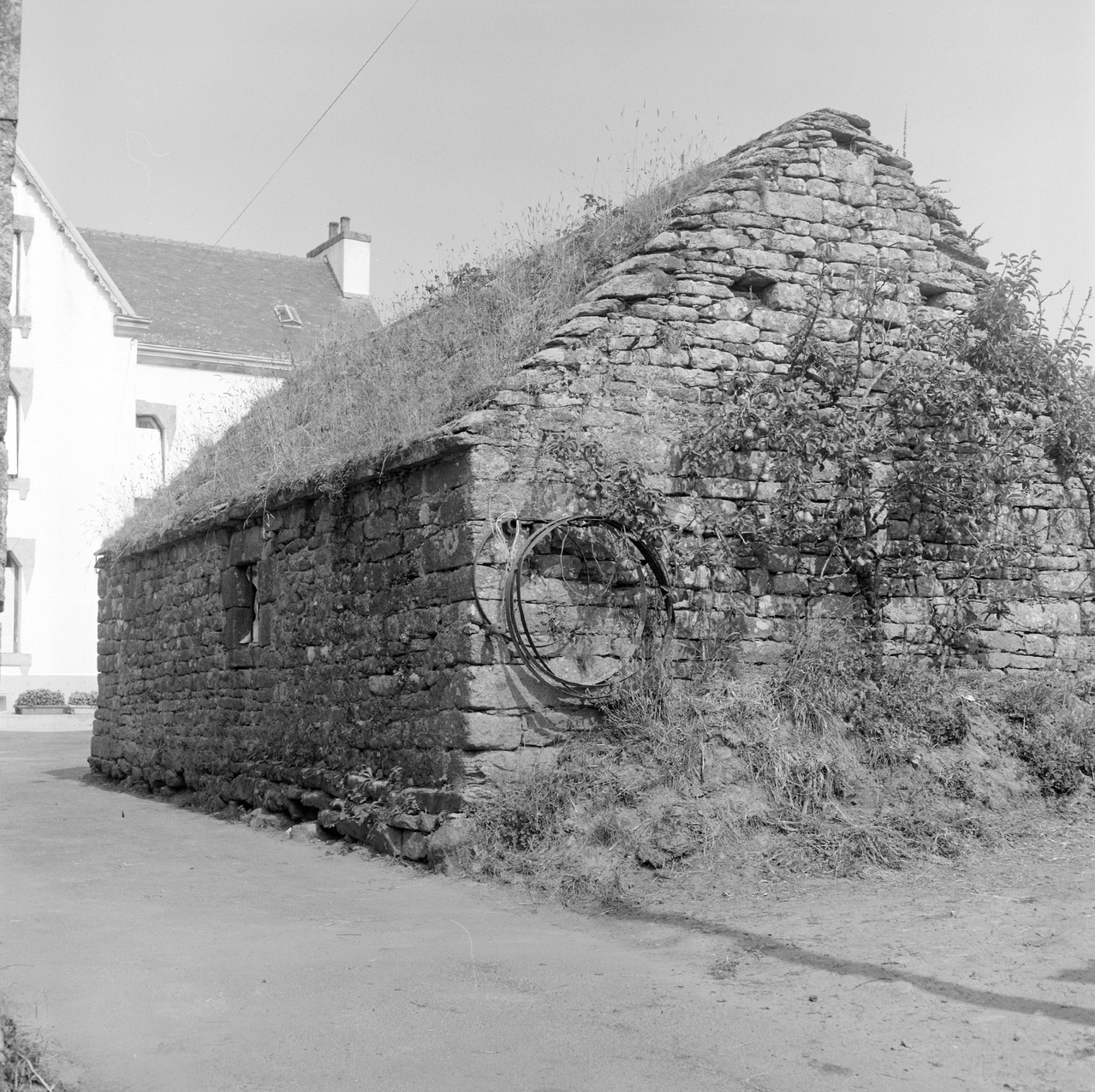 Kerdréal, ferme 4, crèche avec toit en pierre, vue prise de l'extérieur. (1981)Immatriculation