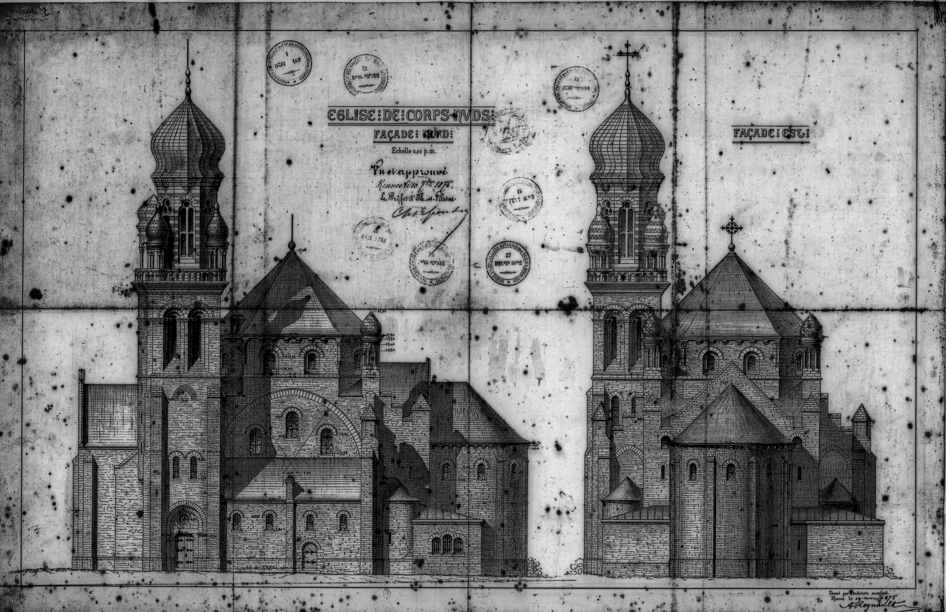 Plan des façades sud et estImmatriculation