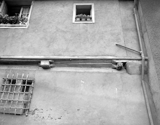 L'ancien logis de ferme, vue de détail d'un encorbellement prise en 1981Immatriculation