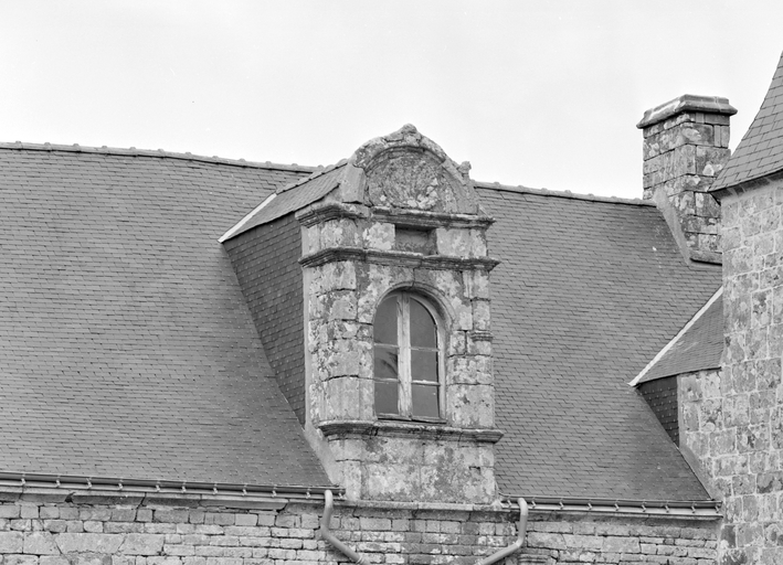 Elévation antérieure, lucarne est.Immatriculation