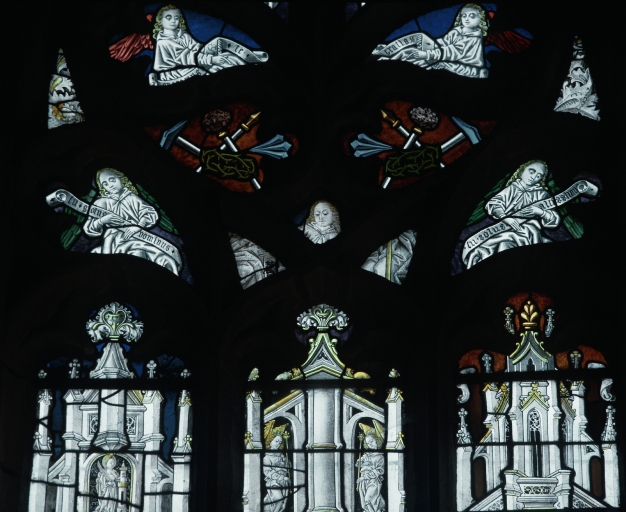Baie gauche : réseau, partie inférieure, anges et instruments de la PassionImmatriculation