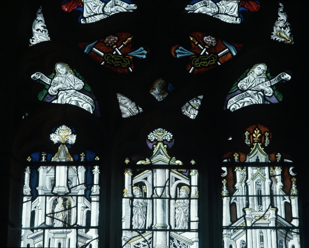 Baie gauche : réseau, partie inférieure, anges et instruments de la PassionImmatriculation