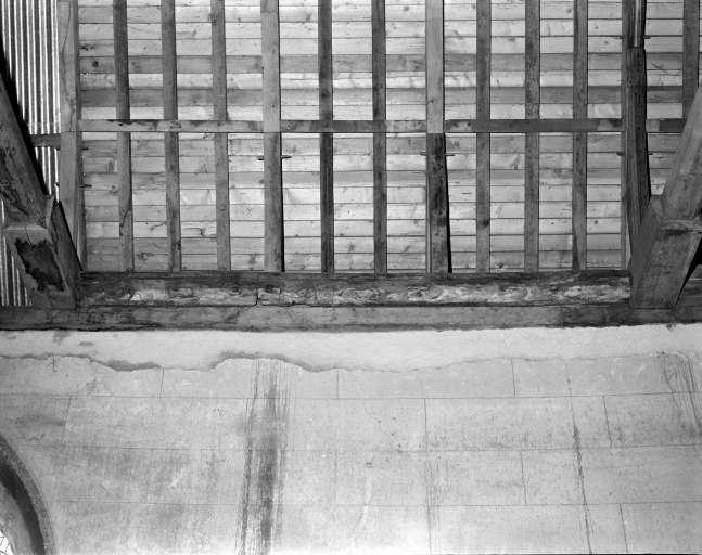 Décor de charpente : 9 sablières, 7 blochets, 1 poinçon et 4 entraits,