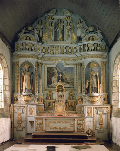 Ensemble du maître-autel : autel, retable, tabernacle, exposition, tableau d'autel (Vierge de Pitié),