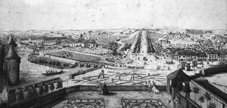 Reconstitution d'une vue du Mail au 17e siècle, dessin, 19e siècle (Rennes, musée de Bretagne).Immatriculation