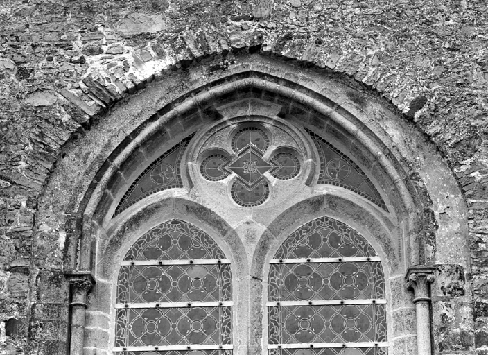 Eglise ; chevet, détail : fenêtre, partie hauteImmatriculation