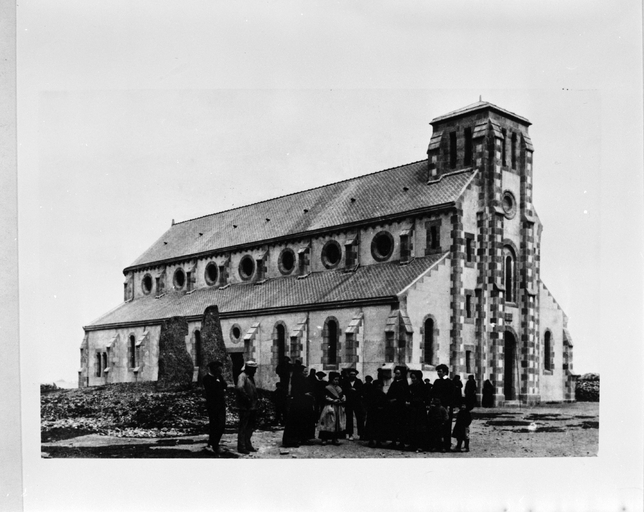 Ile-de-Sein, église paroissiale Saint-Guénolé : vue générale sud-ouest. Coll. Villard, S.D.A. Quimper, reproduction de 1983 (inversée)Immatriculation