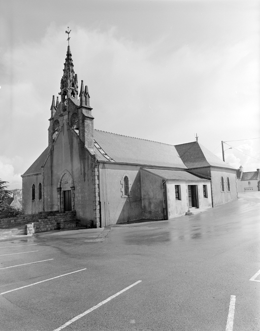 Plouhinec, église paroissiale de Poulgoazec : vue générale sud-ouest, état en 1983Immatriculation