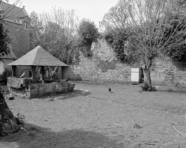 Cour intérieure, puits et mur sud de l'ancienne chapelle Saint-Nicolas. (1983)Immatriculation